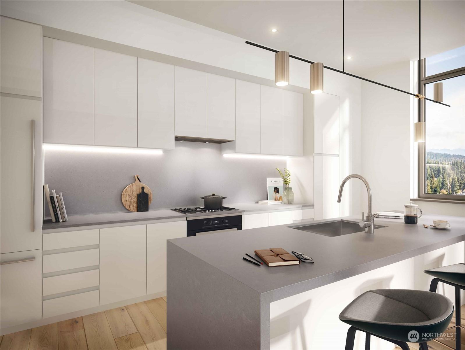 Northeast corner one bedroom with balcony! Located in Downtown Bellevue, Mari is a boutique luxury condominium building offering a variety of floorplans ranging from studios to four bedroom penthouses. Finishes include custom kitchen cabinetry with wood-paneled appliances, quartz countertops, 9-12 foot ceilings, wood floors throughout and Latch keyless entry. Amenities include a concierge, fitness center, yoga studio, dog run/wash and the top-floor SkyClub with indoor access to dining and outdoor gathering spaces. Occupancy expected Spring 2024. Selling broker must register buyer with the listing brokers on the first visit to MARI.