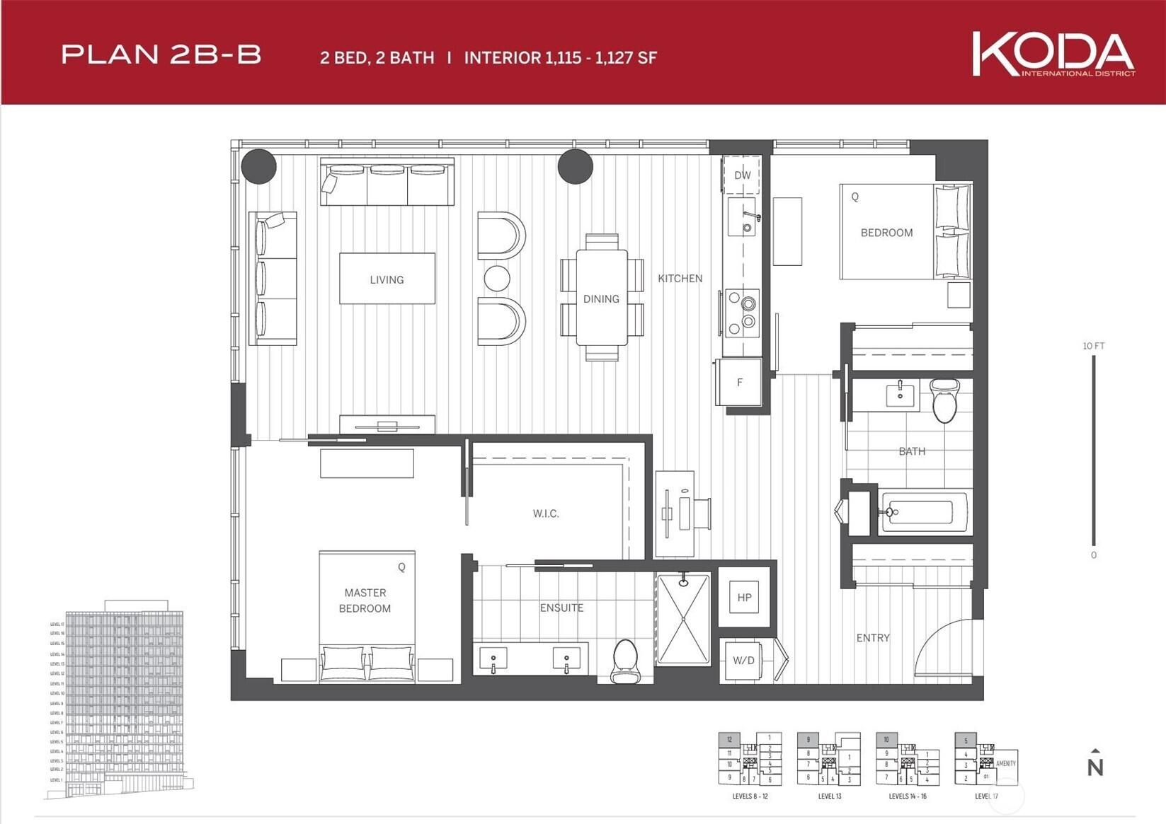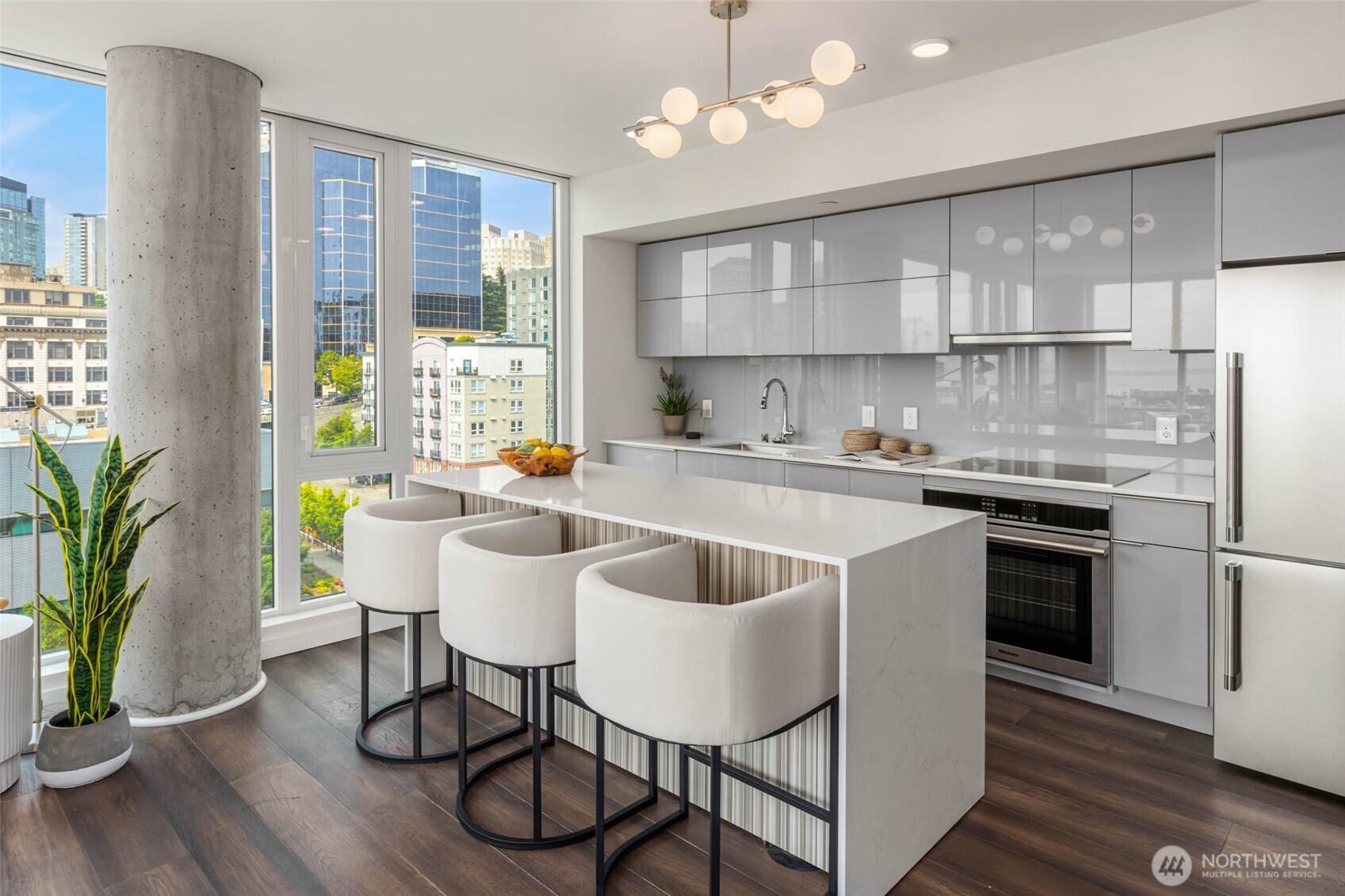 Welcome to KODA—a bold, modern high-rise in Seattle’s vibrant International District. Thoughtfully designed homes feature generously lofted floor-to-ceiling windows, smart layouts, and sleek finishes. Last of this popular floorplan, this two bedroom, two bathroom home features wrap-around windows featuring sweeping views of the Puget Sound and Seattle skyline. Price includes one reserved parking spot, one storage unit. Enjoy unmatched amenities: a wellness center, rooftop terrace with sweeping views, coworking lounge, guest suites, and Club KODA with a theater, kitchen, and dining space. Steps from light rail, Uwajimaya, stadiums, and downtown, KODA blends urban energy with authentic cultural roots. Live where heritage meets modern living.