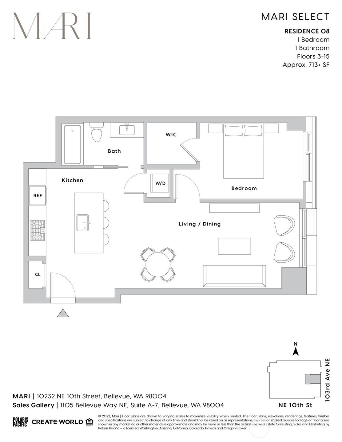 East facing one bedroom! Come see our model home! Located in Downtown Bellevue, Mari is a boutique luxury condominium building offering a variety of floorplans ranging from studios to four bedroom penthouses. Finishes include custom kitchen cabinetry with wood-paneled appliances, quartz countertops, 9-12 foot ceilings, wood floors throughout and Latch keyless entry. Amenities include a concierge, fitness center, yoga studio, dog run/wash and the top-floor SkyClub with indoor access to dining and outdoor gathering spaces. Selling broker must register buyer with the listing brokers by emailing info@maribellevue.com or; selling broker must be present at the buyer’s first visit or; client must register selling broker on first visit to MARI.