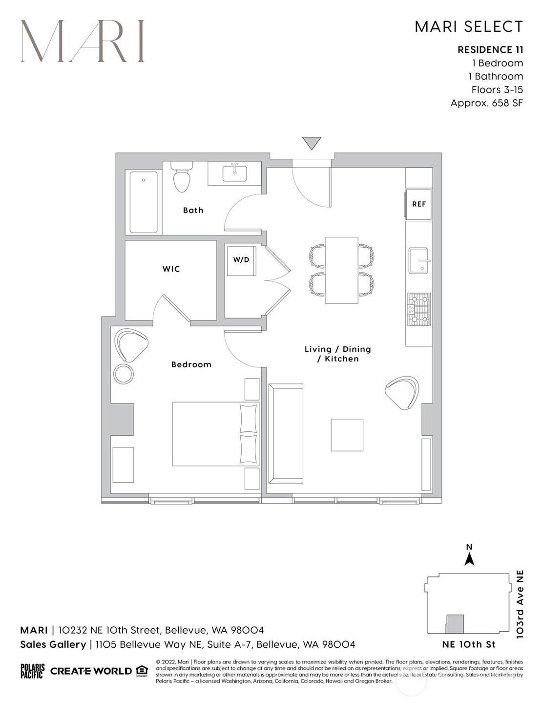 Sunny south facing one bedroom! Located in Downtown Bellevue, Mari is a boutique luxury condominium building offering a variety of floorplans ranging from studios to four bedroom penthouses. Finishes include custom kitchen cabinetry with wood-paneled appliances, quartz countertops, 9-12 foot ceilings, wood floors throughout and Latch keyless entry. Amenities include a concierge, fitness center, yoga studio, dog run/wash and the top-floor SkyClub with indoor access to dining and outdoor gathering spaces. Selling broker must register buyer with the listing brokers by emailing info@maribellevue.com or; selling broker must be present at the buyer’s first visit or; client must register selling broker as their broker on the first visit to MARI.