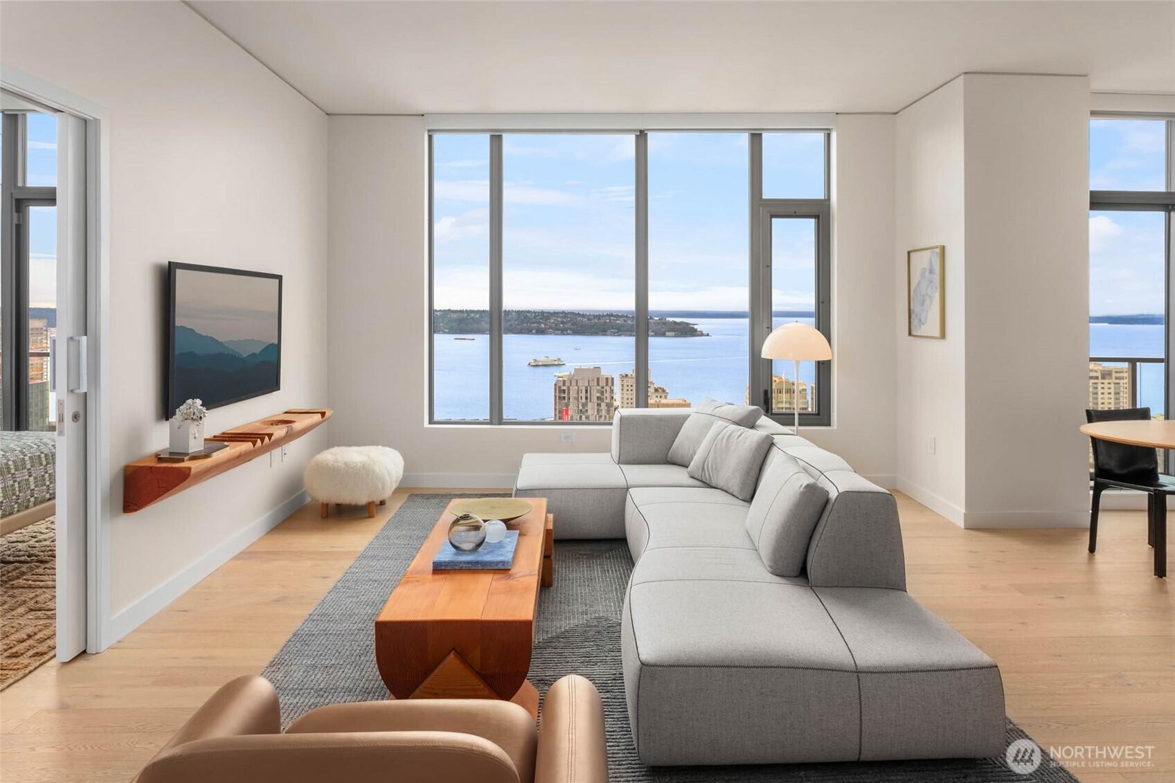 Spire Condominium, the apex of Belltown, South Lake Union, and Denny Triangle, offers iconic Space Needle and water views unlike any other new condo building in Seattle. This coveted location allows easy access to retailers, restaurant/bars, technology centers, arts, outdoor recreation, and entertainment. Rising high at 41 stories of incredible spaces including this 2 BR/1.75 bth that offers incredible Sound and Olympic Mt views with great kitchen, island, separated bedrooms, bathroom w/window and parking. Amenities include concierge, top floor fitness, pet run, 40th floor clubroom, dining, terraces, co-working space, conference room, theater, movement studio + more. Buyer must register broker on first visit. Ask about our Special Financing