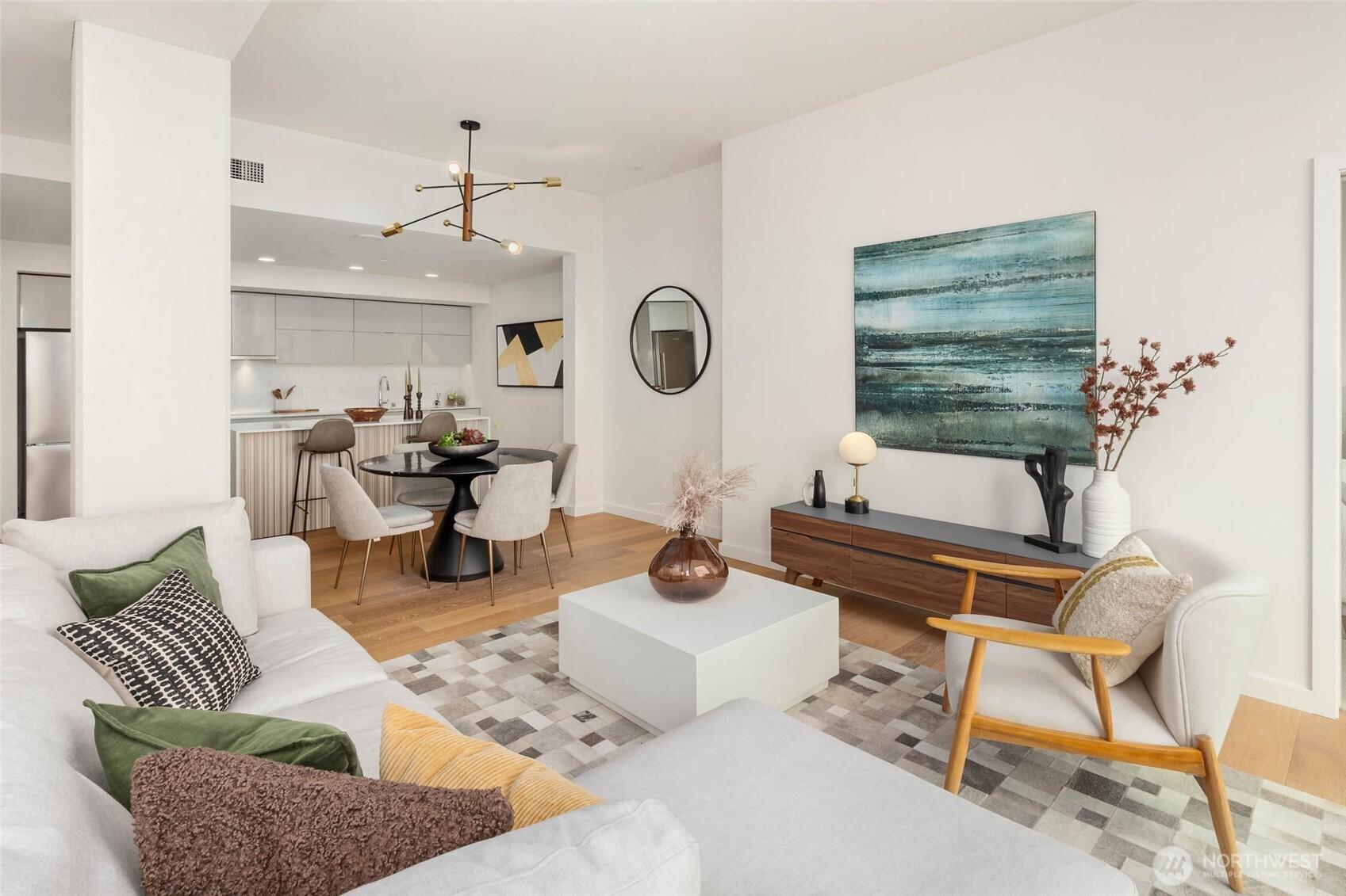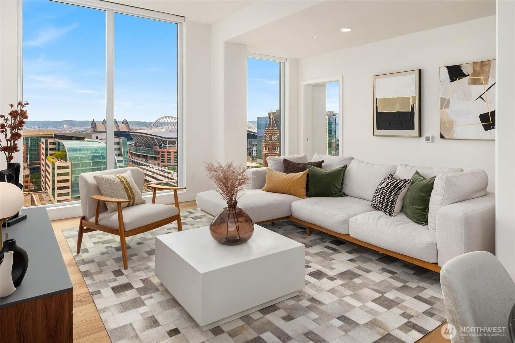 Welcome to KODA—a bold, modern high-rise in Seattle’s vibrant International District. Thoughtfully designed homes feature generously lofted floor-to-ceiling windows, smart layouts, and sleek finishes. Introducing the last of the KODA Penthouse collection this two bedroom, two bathroom home features generously vaulted ceilings and stunning views of Mt. Rainier. Price includes one reserved parking spot, one storage unit. Enjoy unmatched amenities: a wellness center, rooftop terrace with sweeping views, coworking lounge, guest suites, and Club KODA with a theater, kitchen, and dining space. Steps from light rail, Uwajimaya, stadiums, and downtown, KODA blends urban energy with authentic cultural roots. Live where heritage meets modern living.