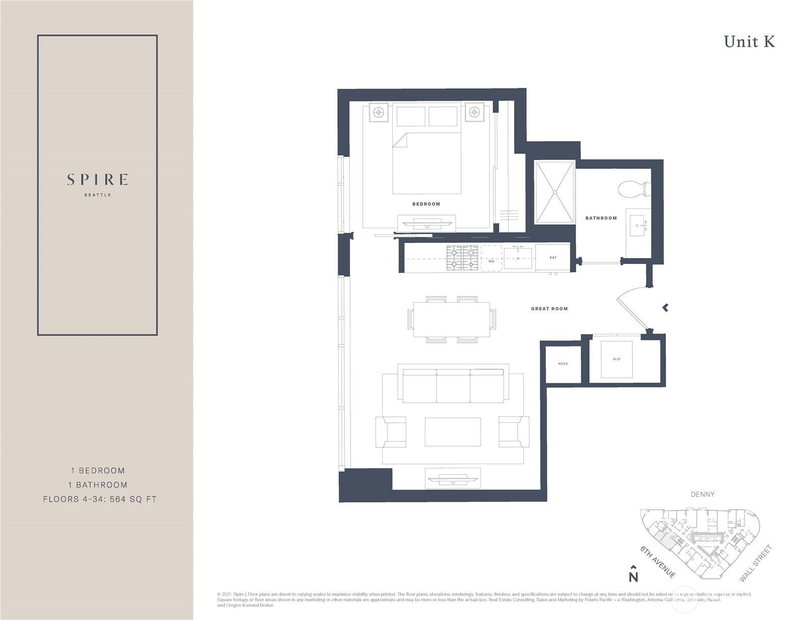 Spire Condominiums, at the apex of Belltown, South Lake Union, and Denny Triangle, offers iconic Space Needle and water views unlike any other new condo building. This coveted location allows easy access to retailers, restaurant/bars, technology hubs, arts, outdoor recreation, and entertainment. Rising to 41 stories including this west facing, incredible Sound and Olympic view, light filled, true enclosed 1 bedroom with Bosch appliances, closet with custom organization, + roller shades! Amenities include concierge, top floor fitness center, pet run, 40th floor clubroom, dining, terraces, co-working space, conference room, theater, movement studio + more. Buyer must register broker on first visit. Ask about our Fall Rate Buydown incentive!