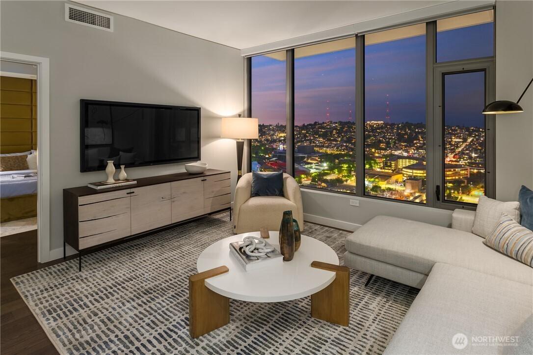 Spire Condominiums, at the apex of Belltown, South Lake Union, and Denny Triangle, offers iconic Space Needle and water views unlike any other new condo building in Seattle. This coveted location allows easy access to retailers, restaurant/bars, technology centers, arts, outdoor recreation and entertainment. Spire rises high at 41 stories of incredible spaces. This 1 bed has Lake Union, Sound and Space Needle views, a two entry bathroom, large walk-in closet, custom built-ins, + parking. Amenities include concierge, top floor fitness center, pet run, 40th floor clubroom, dining, terraces, co-working space, conference room, theater, movement studio + more. Buyer must register broker on first visit. Ask about our Fall Rate Buydown Incentive.